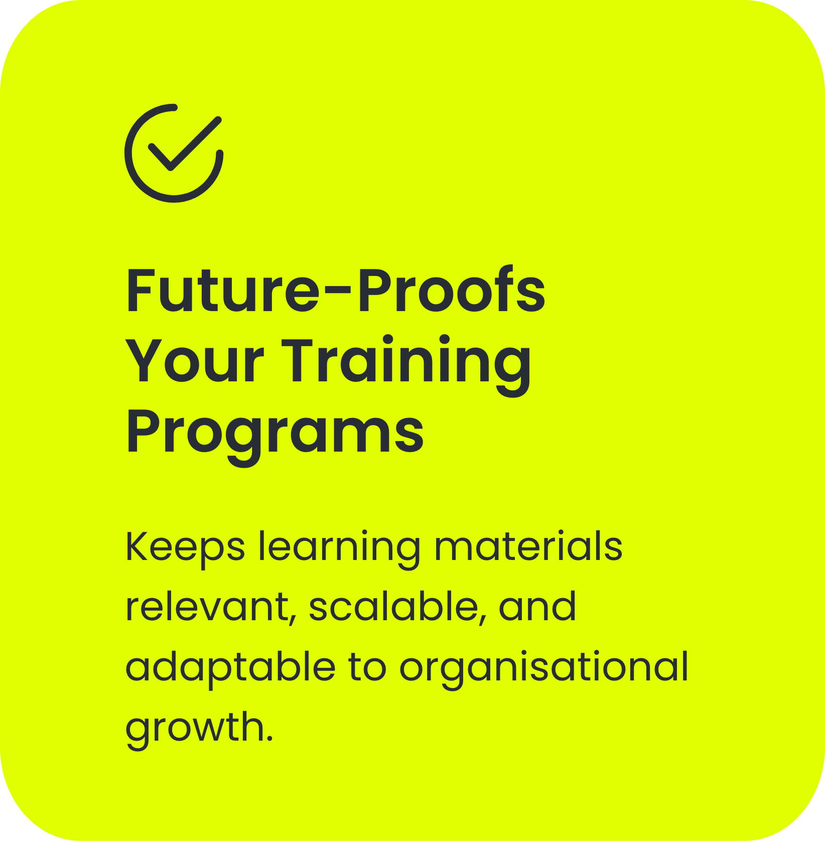 ✓ Standardise knowledge across teams by turning scattered information into structured learning content.